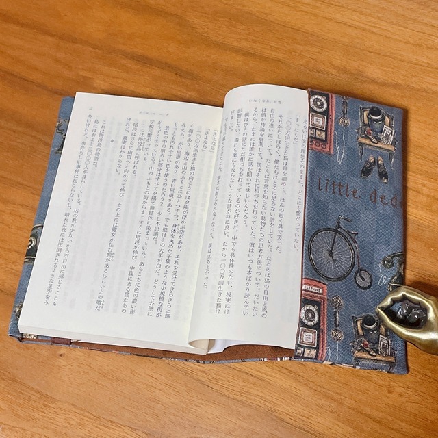 「 今日の気持ちに寄り添ってくれるのはどの物語だろう 」 文庫本サイズの布製ブックカバーです。 サイズ調整可能なので、厚い本にも対応◎ オリジナル線画イラストをプリントした生地を使用し、ハンドメイドで仕上げました。 アンティーク雑貨をモチーフとした落ち着いた絵柄です。 年代問わずにお使いいただけます。 ◎TEL柄 ( Illustration by. Hamasato Kaede ) ◎SIZE: 文庫本対応 ◎インクジェットプリント / 綿100% ◎裏地付き ※ 1点ずつ柄の出方が異なりますのでご了承ください。