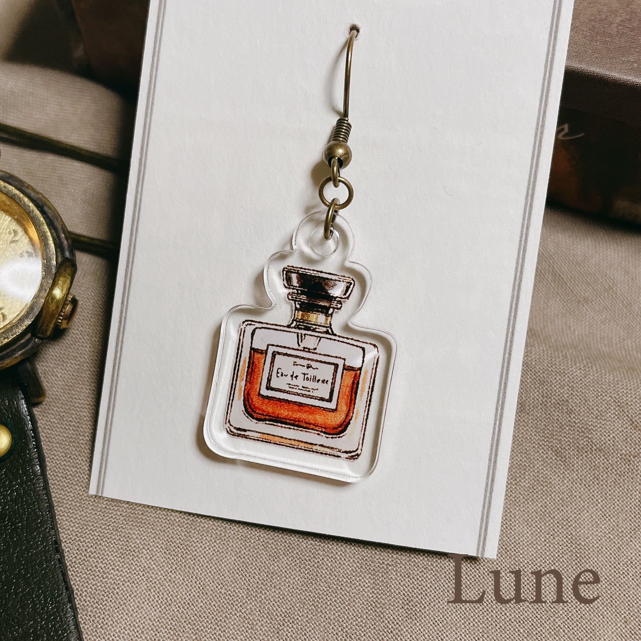 香水やレトロな雑貨モチーフのオリジナル線画イラストが念願のアクセサリーになりました。