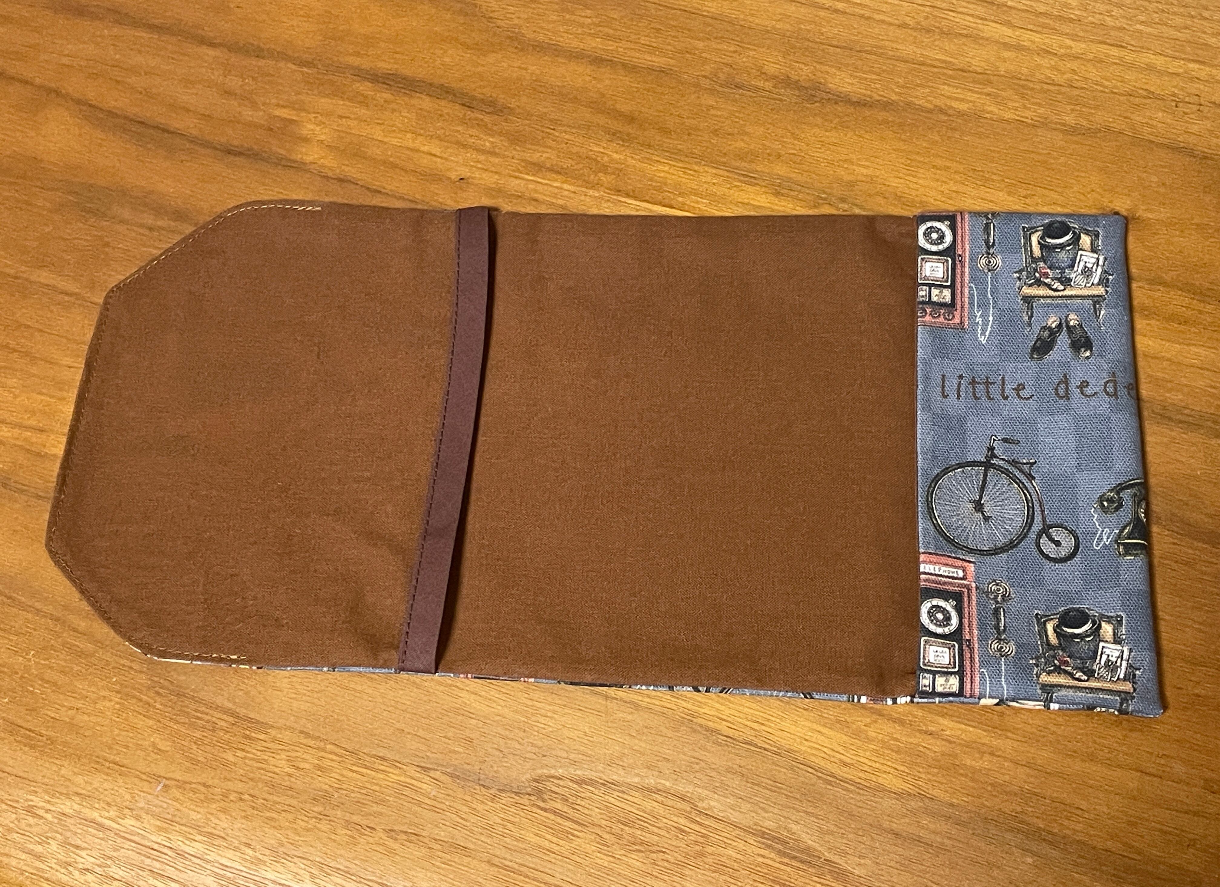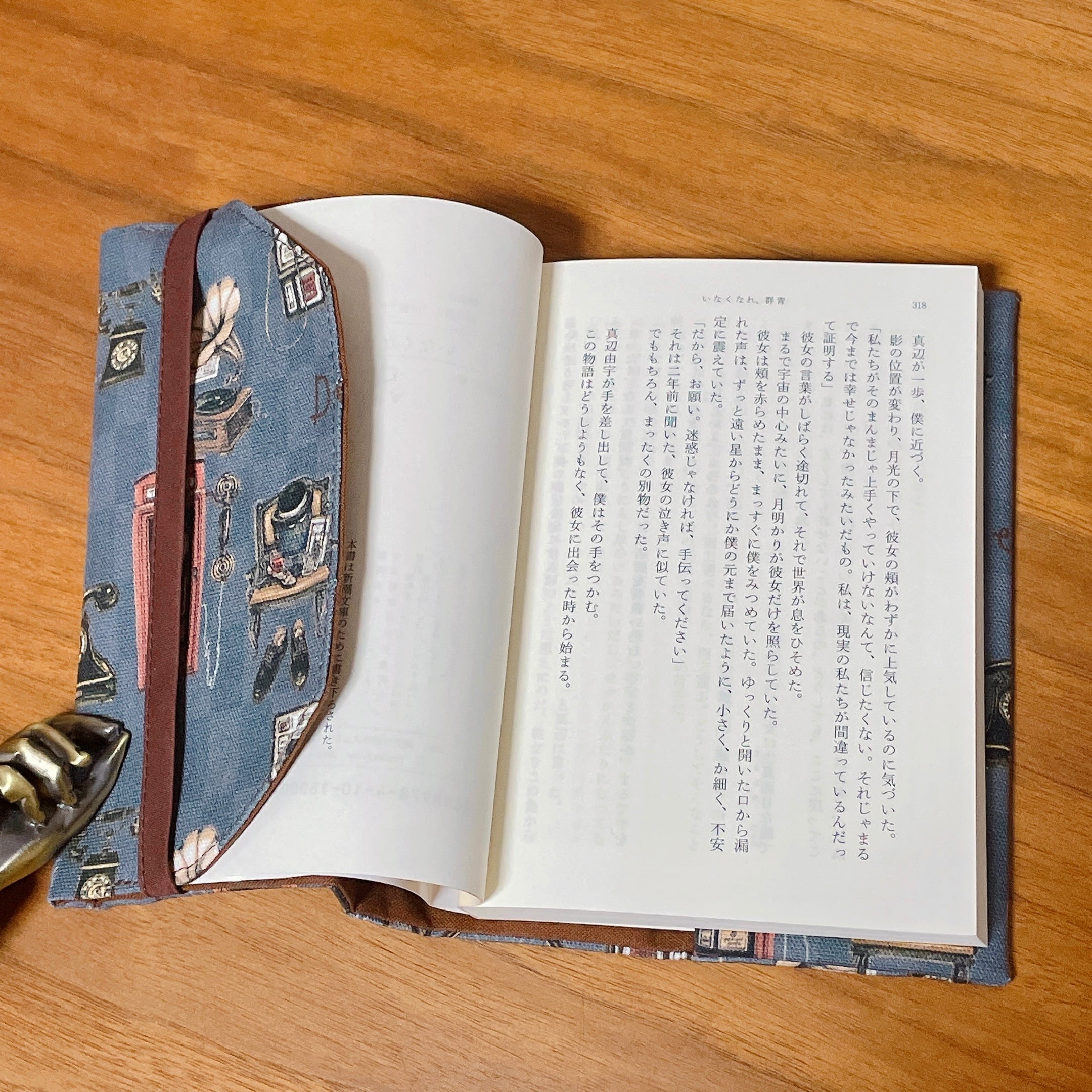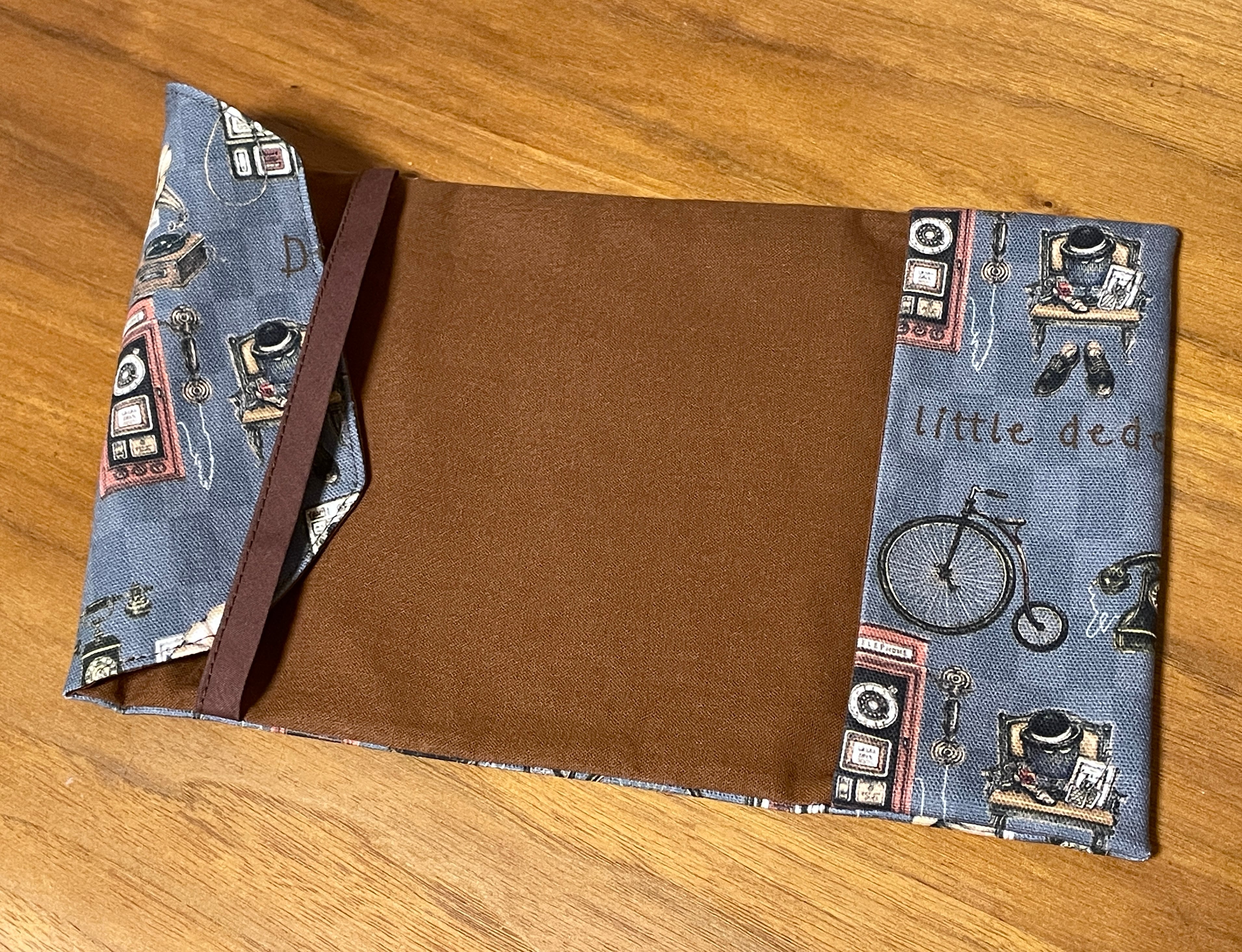 オリジナル線画イラストをプリントした生地を使用し、ハンドメイドで仕上げました。