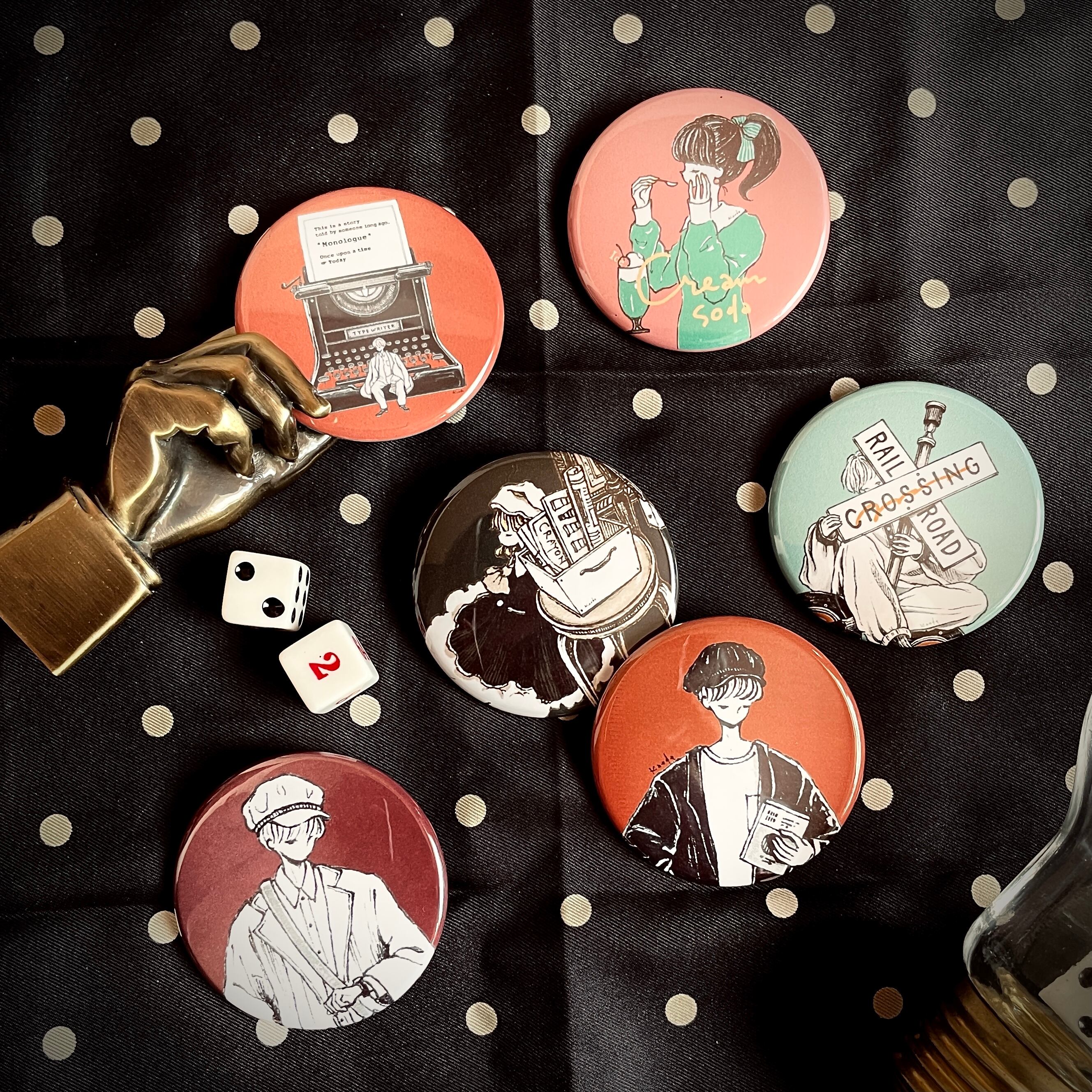 バッグやポーチ、お洋服などに付けてファッションのワンポイントにしても可愛い缶バッヂ。